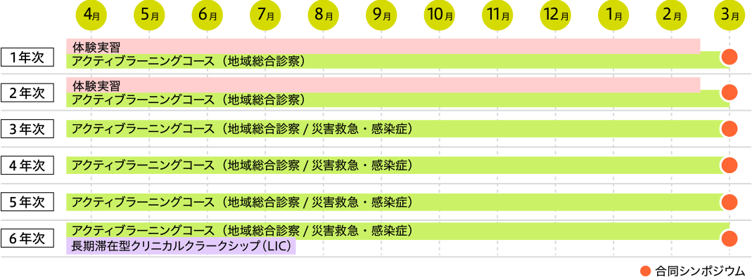 | ■学びの目標 | 総合診療、救急・災害医療、感染症など地域社会で求められる総合的な診療能力を身に付けるとともに、地域志向性を涵養する |